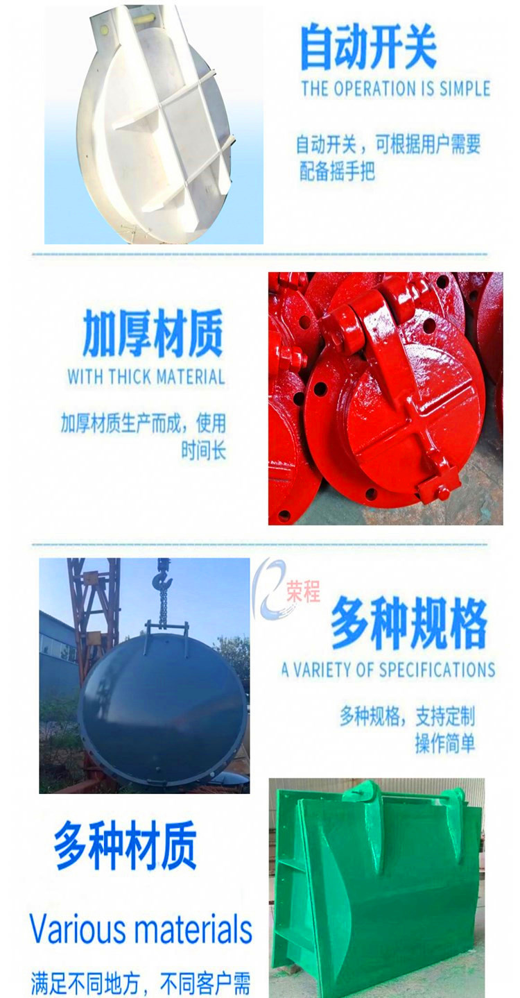 材質(zhì)分為不銹鋼、鑄鐵、型鋼、復合材料(玻璃鋼)等多種材料,拍門又分為很多種,比如,浮箱式拍門,平板式拍門,套筒式拍門側(cè)翻拍門等等,可以做成懸掛式,單開門,雙開門,節(jié)能型根據(jù)客戶需要鑄造合適材質(zhì)拍門,業(yè)務咨詢13582492022孫經(jīng)理,微信同號。
