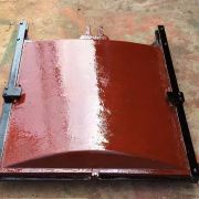 3、 澆注混凝土?xí)r,流進閘板、閘框、斜鐵、擋板間的灰漿應(yīng)完整斷根,以防止灰漿凝固后影響閘門啟閉。