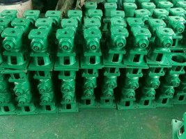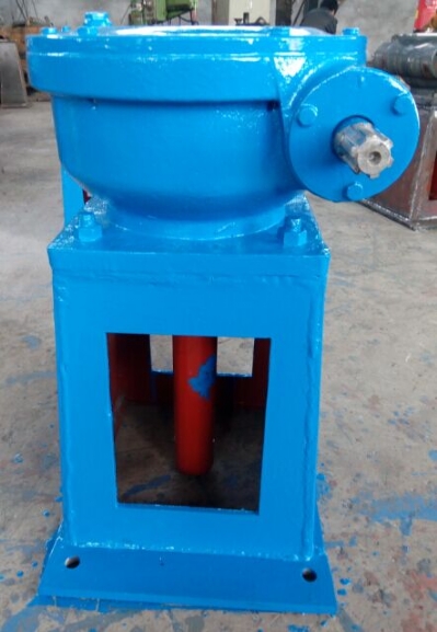 2、將手動螺桿啟閉機(jī)置于安裝位置。把一個限位盤套在螺桿上,將螺桿從橫梁的下部旋入機(jī)器中,當(dāng)螺桿從機(jī)器的上方露出后,再套上限位盤。螺桿的下方與閘門連接。